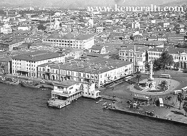 Büyükşehir Belediye Başkanlığı binasının bulunduğu yerde iki katlı ama oldukça hacimli bir yapı vardı. XIX. yüzyıldan kalma ve zemin katı tamamen depo olarak kullanılan bu yapıyı yüzyılımızın başında Bakırcıyan kardeşler kullanırdı. Yapının Gümrük’e doğru hemen bitişiğinde Maksudyan Hanı, Vilâyet binasına doğru olan bitişiğinde Whittall Şirketi’nin binası, onun yanında ise Kadri Beyin iş yeri bulunmaktadır. Sarı Kışla’nın ana cephesinin tam karşısına gelen yapının önü yıllar boyunca Güzelyalı istikametine giden tramvay ve troleybüslerin durakları olarak kullanılır.